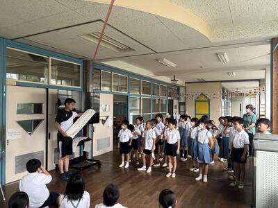 ↑ 6月13日(火)に2年生のプール開きを行いました!初めに、校長先生からお話をしていただきました。お話の中にあった「自分の命を守ること」「最後までやり遂げること」を忘れず、安全に活動していきたいと思います!