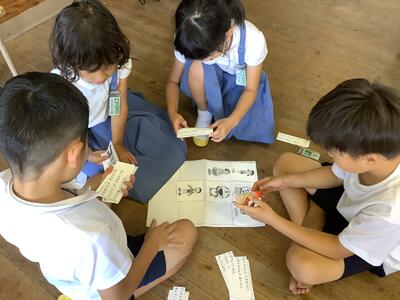 7日の昼休み、何人かの子供たちが何やらかるたを始めました。よーく見てみると、なんと都道府県かるた!