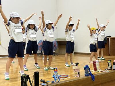 ③夏休みと言えばラジオ体操!! 体育の時間にラジオ体操を一緒にしてみました。全体の半分くらいの子供たちが未経験でした。何度も何度も練習してだいぶん上手になりました。 ③