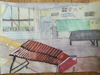 図工風景画「学校のお気に入りの場所」(6年1組)