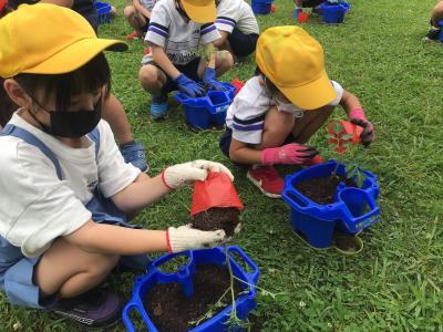 生活科の授業で、野菜の苗をポットから植えたことがあったので、