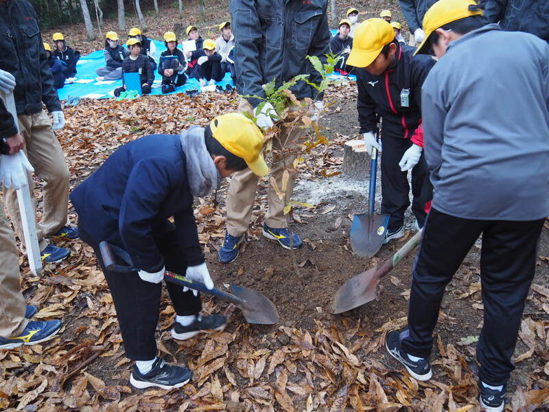 12月16日(火)に芦北高校に林業体験に行きました。森の働きについて説明を受けた後、伐倒見学、植林体験、ネイチャーゲームと楽しみながら学ぶことができました。