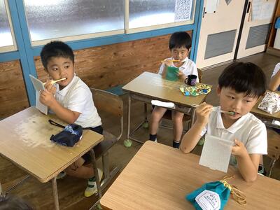 町たんけんに行っておなかがすいたのか、2年生になり初めて給食を時間内に完食することができました。