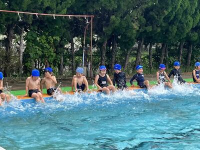 後半は、ペットボトルやボール、ビート板を使って、背浮きで浮く練習もしました。体に力が入り、うまく浮けないことがありましたが、校長先生も言われた「自分の命は自分で守る」ことは忘れないでほしいと思います。