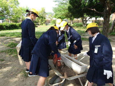 2時間目に一人一鉢を行いました。用務員の坂本先生のお話を聞いた後、作業に入りました。子どもたちは、卒業式で使用した鉢を新しく変えるために土を返しプランターをきれいにしていました。重いプランターを軽々持ち上げる姿を見てとてもたくましく見えました。また、子どもたちは一生懸命作業したので予定より早く終えることができました。今後も子どもたちの一生懸命動く姿を期待しています。