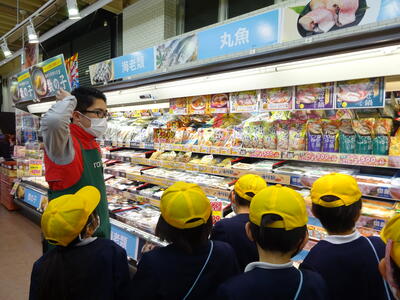 お客さんが安心して買い物できる工夫がされていることを、実際に見ることで学びを深めていました。