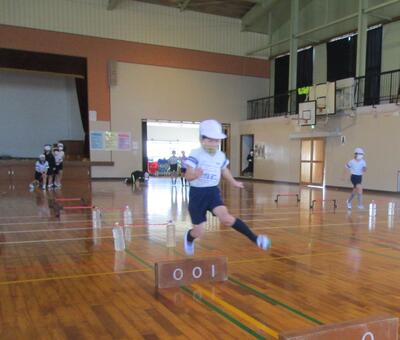 それぞれ高さの違うハードルをリズムよく走り越えていました。
