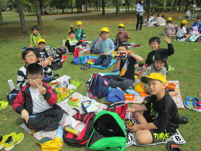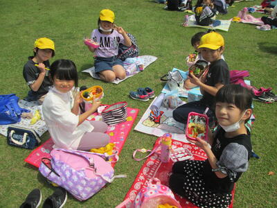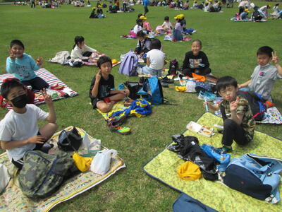 楽しい歓迎遠足。エコパークで友達と一緒にお弁当を食べたり、楽しく遊んだりしました!