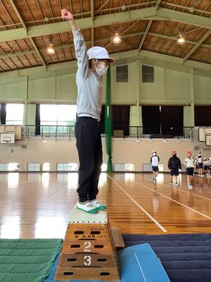 縄跳びと合わせて跳び箱にも挑戦しています。