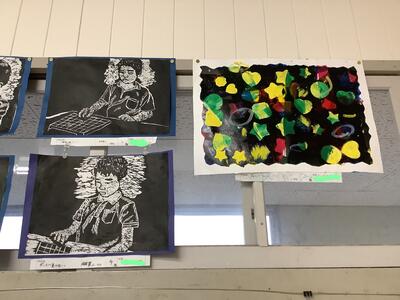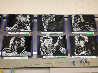 初めての木版画ということで、慣れない彫刻刀に四苦八苦しましたが、見事に刷り上げた子供たちです。