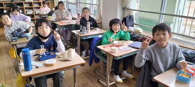 感染対策のこともあり、自分の席で前を向いて食べるという味気なさはありましたが、いつもの学校とはちがって、時間に追われることもなく、ゆったり過ごせた1日でした。