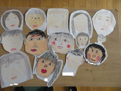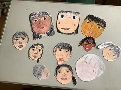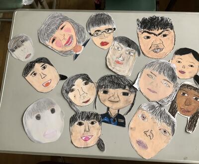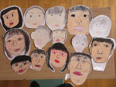 図工で自分の顔をかきました。自分の顔とにらめっこしながら、目、口、鼻と一つ一つ丁寧にかきていました。そっくりな顔が出来上がりました。