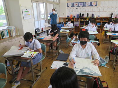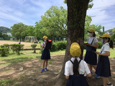 図工で木の絵に取り組んでいます。木に触ったり、写真をとったりしてたっぷり木と触れ合いました。触れ合ったことで、改めて、二小にはいろいろな種類の絵があることに気付いた子どもたちでした。今後、感じたことを自分たちの絵に表す活動を進めていきます。