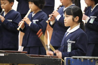 4年生は、水俣市音楽会で発表した、合唱「赤い屋根の上」、合奏「ラデッキー行進曲」を披露しました。