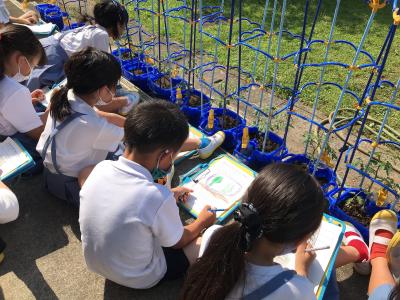黄色い花が咲いたことを嬉しそうに話してくれる児童もいました。