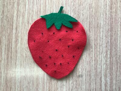 玉止め練習の最後は、いちごの種を玉止めで作ること。見事ないちごを作り上げました。