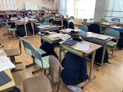 先日、水俣市の放送に合わせ、地震の避難訓練(シェイクアウト訓練)を学級で行いました。いつ起こるかわからない災害。いつも心の備えをしてほしいと思います。ご家庭でも話題にしていただけると幸いです。