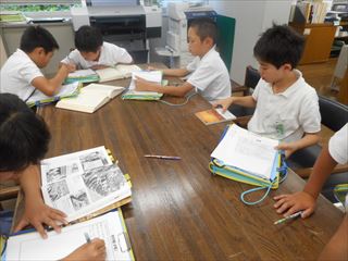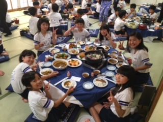 本日は町探検に出かけた学年やエコパークに調査に行っている学年もあります。