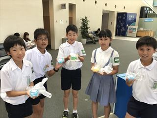 5年生が校外学習で「水俣漁師市」を取材に出かけました。