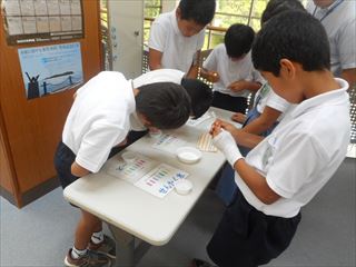 手をつないで移動したり優しく教えてあげたりする姿がとても頼もしく見えた5年生でした。