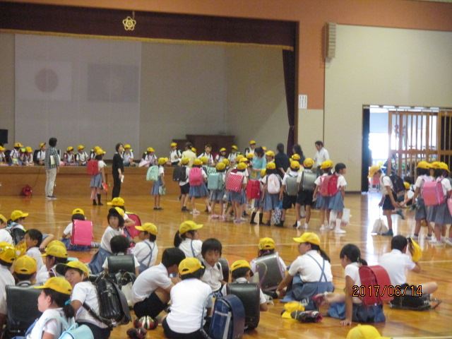 市内の幼稚園、保育園の年長さんが小学校を体験に来ました。