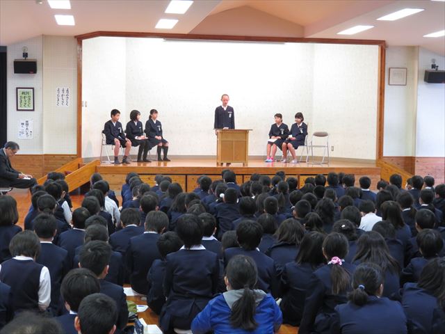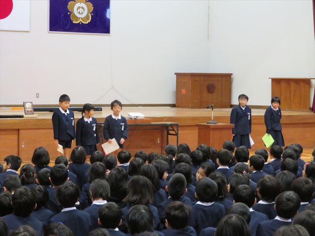 2年生と4年生の代表5人が2学期の思い出と今後の目標を発表しました。