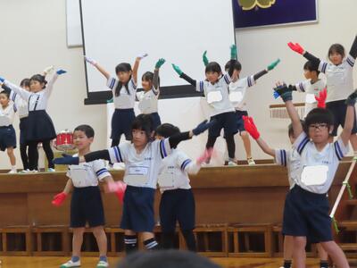 その1週間前に、学校でのお披露目として、発表集会が行われました。