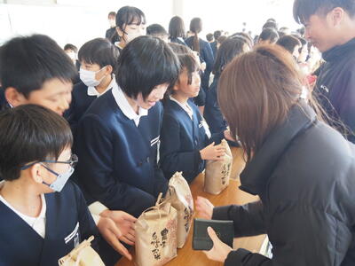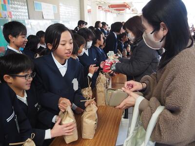 この日は、5年生が田植えや稲刈りをしたお米の販売も行いました。