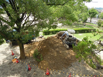 野球部が練習している場所の後方にある投的板の撤去工事がとうとう始まりました。