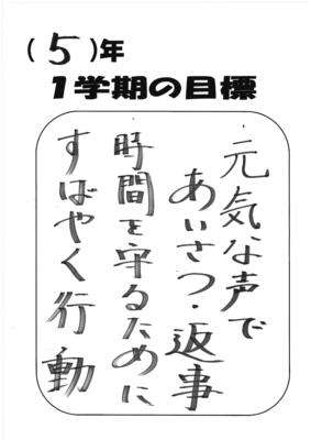 各学年で1学期の目標を決めました。目標達成のために児童325名、職員33名でがんばっていきます。