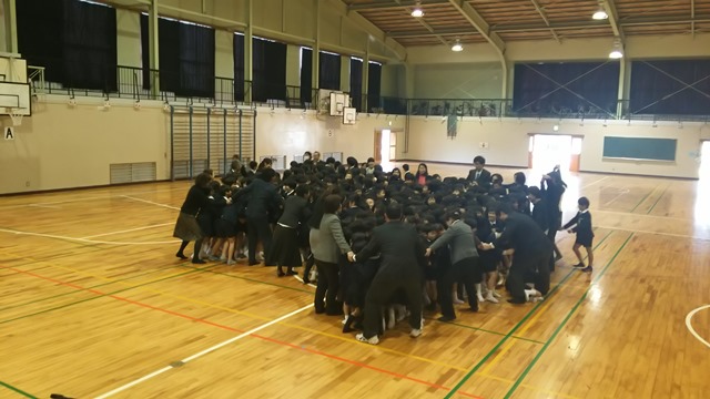まずは、体育館で歓迎会。