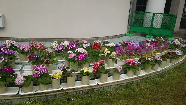 中庭のサクラソウが満開になりました。来週17日(金)まで中庭に置いておきます。