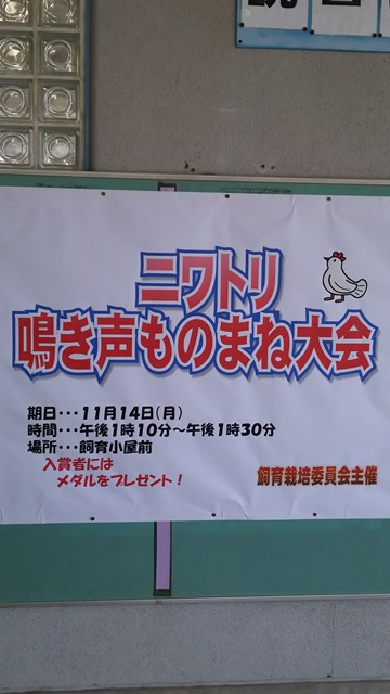 延期されていた「ニワトリ鳴き声ものまね大会」が本日昼休みに鶏小屋の前で開催されました。ゲストに「にわ トリ夫」さんを招きました。1年生から先生たちまで参加しました。審査員は飼育栽培委員会の児童が行いました。大会の様子は行事アルバムに乗せています。とても楽しい昼休みのひと時でした。