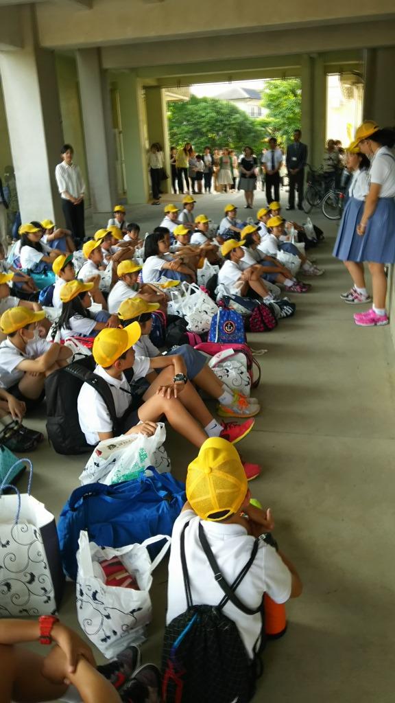 今日から地震で、転校生が6年1組と6年2組に1人ずつ来ました。1組には、◎◎ちゃんが来ました。2組には、○○ちゃんが来ました。短い期間になると思いますが、たくさん話して、仲良くなりましょう。