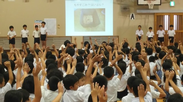 今日、交通安全教室があったのですが、あいにくの雨で、自転車のコースを走ることができず、DVDを多目的ホールで見ました。よくあることなので気をつけないといけないなと思いました。