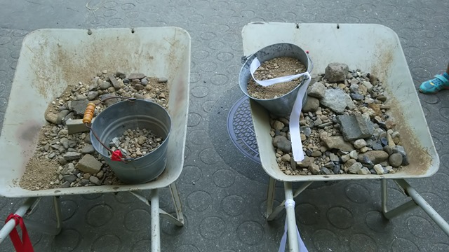 ゴーゴーダッシュが終わってから、3分間、石ひろいをしました。もちろんこれも勝負があります。今日は白団10,2kg。赤団が12,0kg。したがって赤団の勝利でした。勝った赤団は10点、負けた白団は5点でした。
