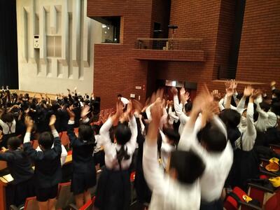 インフルエンザの流行の兆しがあったので、体育館に集まらず、各教室でモニター越しに話を聞くことになりました。