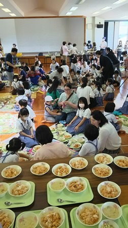 授業参観の前に毎年2年生とその保護者を対象に給食試食会をPTA主催で開催しています。今年は参加者も多く保護者だけでも90名近く参加していただきました。
