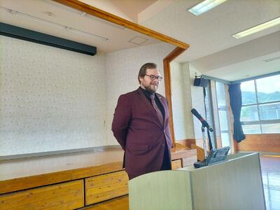 「小学生と授業することになり、最初とても緊張したけど、みんな笑顔で迎えてくれたので、とても楽しかった。」ということでした。これから、出身地のアメリカに戻るそうです。