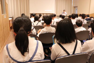 環境について学ぶ機会では、講師の先生のお話を聞く中で、地球の危機を知り、一人ひとりが今すぐに取り組める環境にやさしい行動を考えられました。