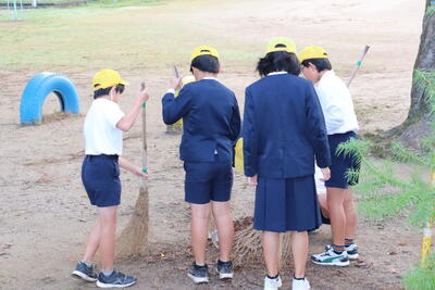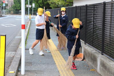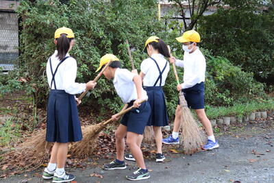これらの画像からわかる通り、登校したばかりの5年生があらゆる場所、かつ、限られた時間で、朝ボランティア:落ち葉掃きを行っていました。