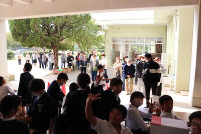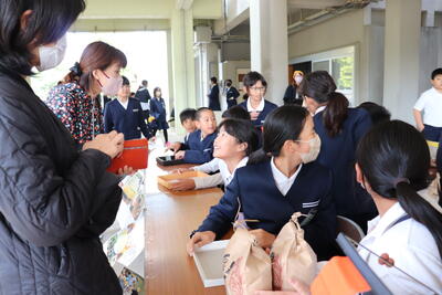 販売の目標は①昼休み時間の20分で完売すること②笑顔で売ることの2つでした。当日は販売開始時刻以前に長蛇の列?ができており、笑顔で販売し、なんと9分で完売しました。