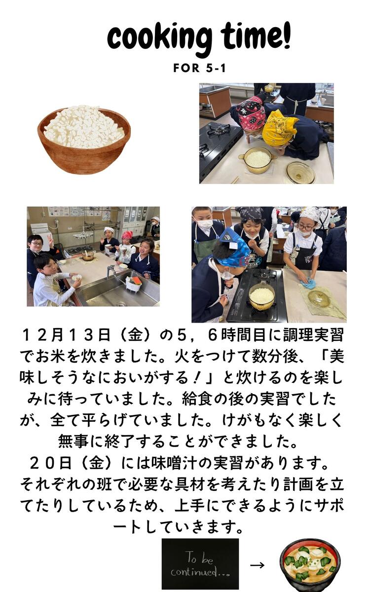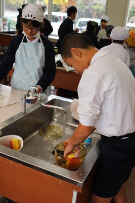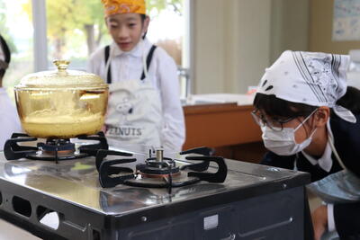 12月6日(金)、家庭科の学習でお米を炊きました。