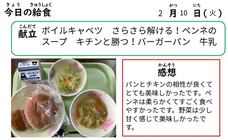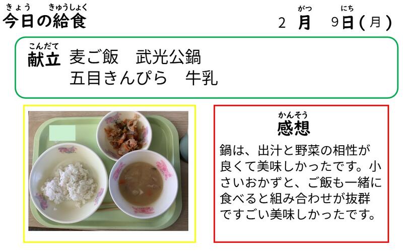子供たちが写真を撮り「献立」「感想」を書いています。