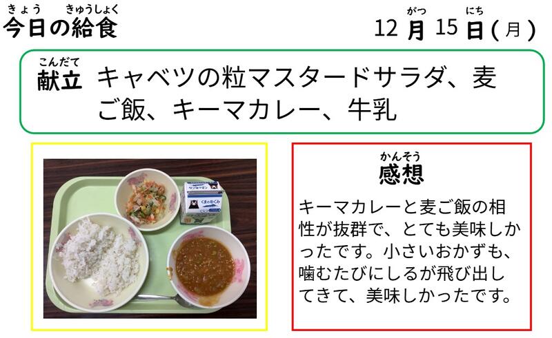子供たちが写真を撮り「献立」「感想」を書いています。