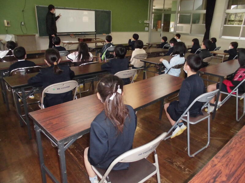 当初、体育館で実施する予定でしたが、この日の寒さとインフルエンザ拡大防止を考慮して、校長室から各教室へのオンライン配信で実施しました。