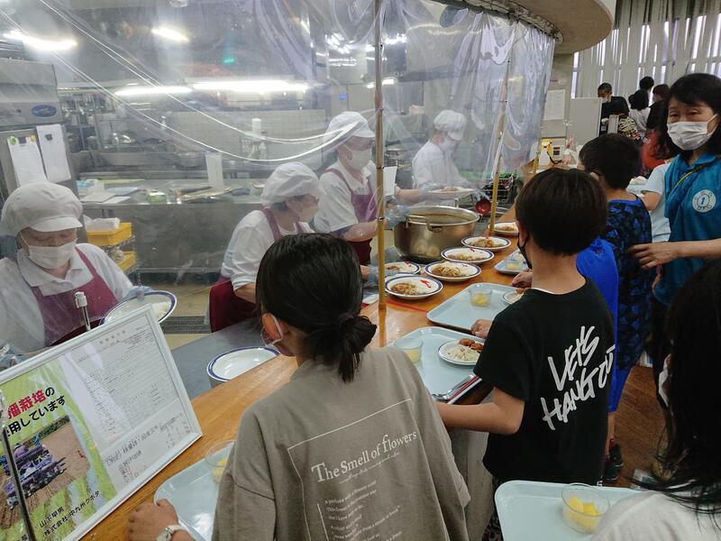 子供たちが写真を撮り「献立」「感想」を書いています。