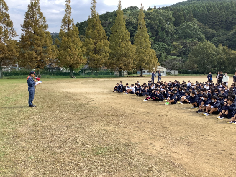 今回は3階の調理室で火災がおきたという設定で行いました。また、6年生は調理室、理科室、図書室に分かれてその場に合った避難の仕方を考えました。朝の時間には、すべての学級で事前学習を行い、「しっかり指示を聞く」「自分だったたらどうするか考える」ことなどを確認しました。訓練では、しっかり指示を聞き行動できました。また、6年生は自分たちで考え行動している姿もありました。訓練後は、消防署の方の話を聞き、各学級で振り返りを行いました。これからも「訓練のための訓練」ではなく、「実践的な訓練」に取り組んでいきます。