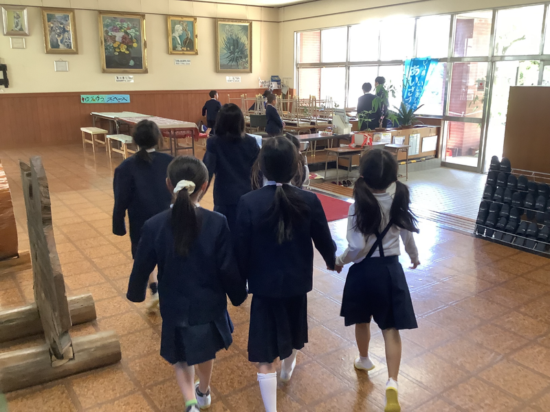 今年度の心うきうきお別れ集会は全校児童で「学校かくれんぼ」を行いました。6年生が校舎内の安全な場所にかくれて、1年生から5年生が縦割り班ごとに探しました。隠れる6年生も、探す在校生もとても楽しそうでした。最後に縦割り班に毎にメッセージを伝え合い、記念写真を撮りました。充実した時間になりました。