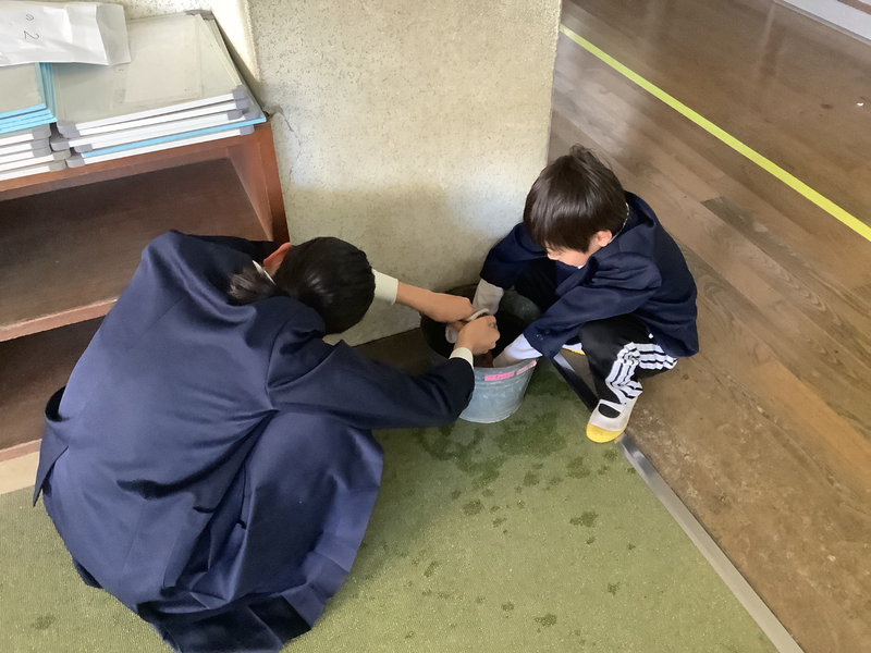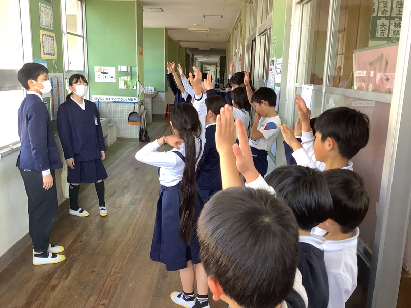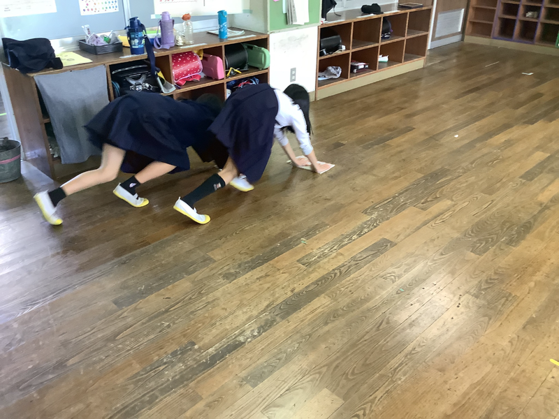 今年度から定期的に縦割り班掃除を行っています。1年生から6年生で班をつくり、それぞれの班に分かれてそうじを行っています。6年生を中心とした上級生が下級生に寄り添いながら取り組んだり、下級生が頑張っている姿を上級生が微笑ましい顔で見ていたり、力を合わせてぞうきんがけをしたり素敵な姿がたくさん見られました。学級ごとに行うそうじもよいですが、縦割り班で行うそうじもみんなが頑張っていてよかったです。